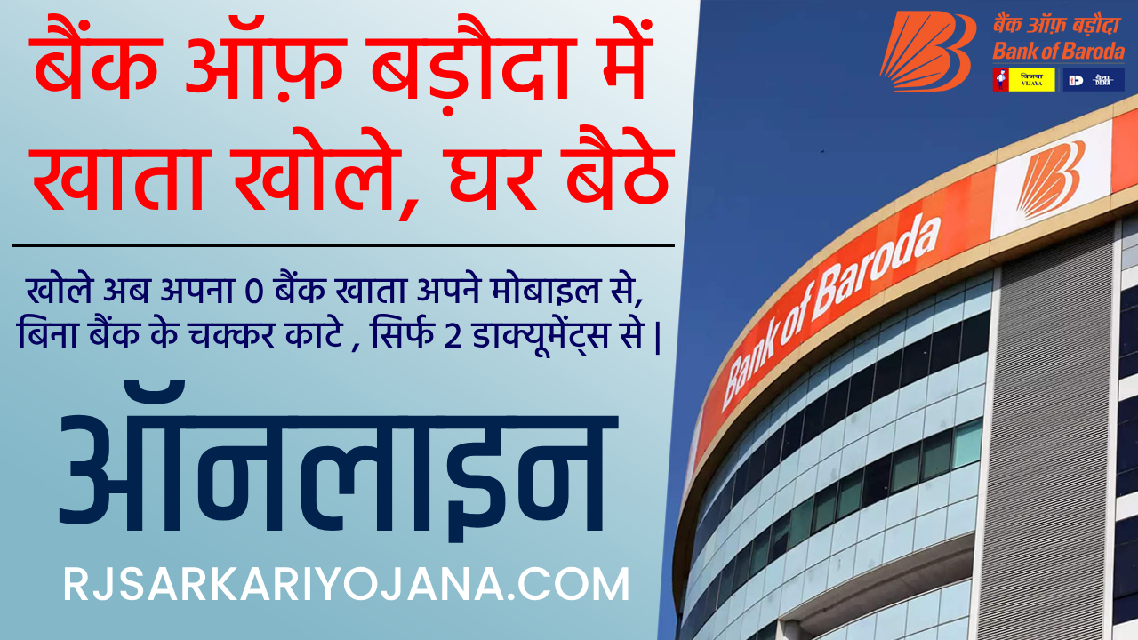 साथियो आइये तो आज के इस लेख में हम जानते है की बैंक ऑफ़ बड़ौदा में ऑनलाइन घर बैठे बैंक खाता कैसे खोला जा सकता है , जिसके लिए आपको कही पर भी जाने की जरुरत नहीं पड़ेगी , और ना ही कोई डाक्यूमेंट्स के प्रिंट आउट निकलवाना या बैंक जाने जैसे जरुरत पड़ेगी , सिर्फ मोबाइल से ही कुछ ही मिनटों में ऑनलाइन आप बैंक खाता खुल जायेगा और चेक बुक , ATM Card/Debit Card सीधे ही आपके घर पर भेजे जायेंगे |