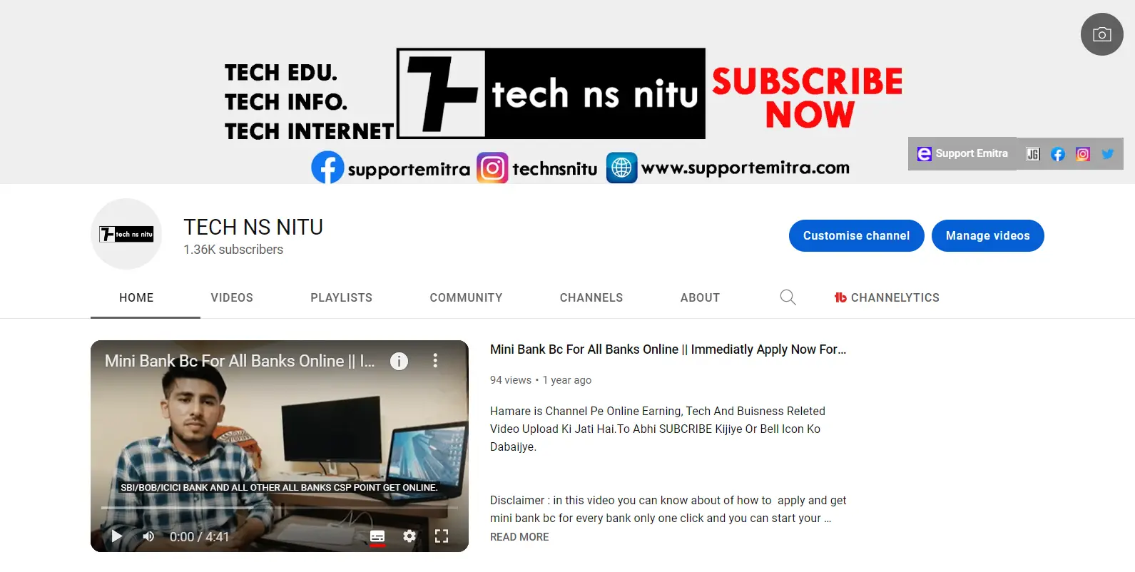 जिसके लिए आप इस लिंक पर क्लिक करके हमारे ऑफिसियल यूटुब चैनल TECH NS NITU पर जाकर हमारे चैनल को सब्सक्राइब कर बेल आइकॉन दबाकर नोटीफीकेशन को तुरतं ऑन कर ले , ताकि आपको सरकारी योजनाओ , सरकारी भर्ती , उनकी पात्रता आदि की विस्तृत जानकारी हमारे चैनल के साथ आसानी से आपको मिल सके |